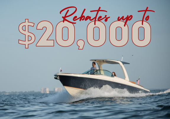 We have rebates up to $20,000 on Chris-Craft boats! These boats are the epitome of class and luxury, check them out!