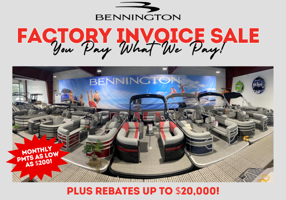 There’s never been a better time to buy a Bennington Pontoon! Finance with us and only pay our invoice price plus freight and rigging! We also have a wide range of models, layouts, colors, sizes, and price points to choose from. We have a pontoon to fit anyone’s lifestyle!Also get up to $20,000 in factory rebates!